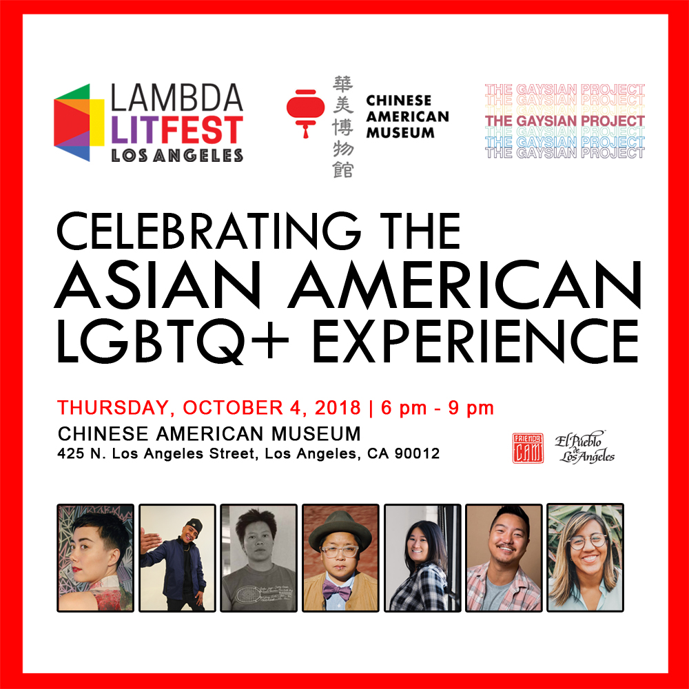 CELEBRATING THE ASIAN AMERICAN LGBTQ+ EXPERIENCE brings together queer identified artists, musicians, and writers in historic downtown Los Angeles at the Chinese American Museum for Lambda Literary’s LitFest 2018. CAM’s current exhibit “Don’t Believe The Hype: LA Asian Americans In Hip Hop” challenges and redefines what hip hop represents, specifically within the Asian American community and how hip hop itself allows for more exploration for gender and sexual identity, defying expectations of “traditional” expectations. But whose expectations shape our experiences? Our community, our parents, ourselves? What does it mean to be queer and Asian American and how does one experience inform the other? Lambda Literary and CAM invite you to explore the exhibit and join us for a panel discussion and performances by D’LO, NATHAN RAMOS, KAY ULUNDAY BARRETT, KITTY TSUI, ADDIE TSAI, MAYA REDDY, and moderated by CB LEE.